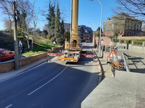 L'opération qui se déroulait à près de 50 mètres du sol a nécessité l'utilisation d'une grue gigantesque qui imposa la fermeture de la nationale.