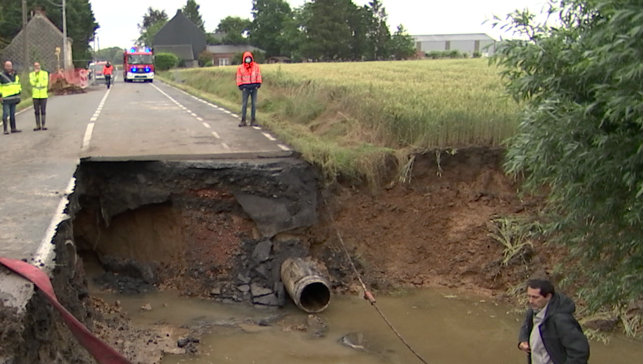 C’était en juin 2021, des orages et pluies diluviennes provoquaient de nombreuses inondations dans notre région et principalement dans les entités de Braine-le-Comte et de Soignies. Dans ces régions, en quelques heures ce sont plus de 90l/m² qui sont tombés. A Neufvilles, c’est une partie de chaussée qui s’est effondrée. Un large trou de plusieurs mètres de diamètre s’est créé sur la route de Montignies.