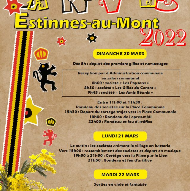 Dès ce week-end, 4 villages se réveilleront au son des tambours, prêts pour 2 ou 3 jours de festivités carnavalesques. Si vous souhaitez prendre un peu de bon temps, de danser et de fêter l’arrivée du printemps, rendez-vous à Strépy-Bracquegnies, Epinois, Estinnes et La Hestre.
