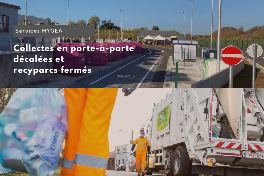 Ce mercredi 23 février, les collectes en porte-à-porte n’ont et n’auront pas lieu. L’ensemble des collectes de mercredi à vendredi seront reportées d'un jour. Les recyparcs sont fermés ce mercredi. Ils rouvriront leurs portes le jeudi 24 février de 9h à 17h.