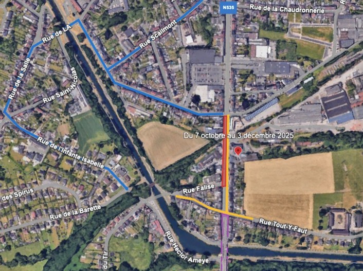 Durant l'ensemble des différentes phases, la rue du Tir sera toujours à sens unique. Quant à la circulation, elle est maintenue dans le sens pair, c’est-à-dire vers Le Roeulx. Les automobilistes qui roulent en direction de La Louvière doivent suivre les déviations mises en place selon l’avancée du chantier.