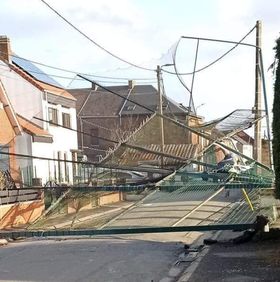 Mais le premier incident de l'après-midi s'est déroulé à Mont-Sainte-Aldegonde où la clôture du jeu de balle a été démolie juste avant de terminer sa course sur le chemin.