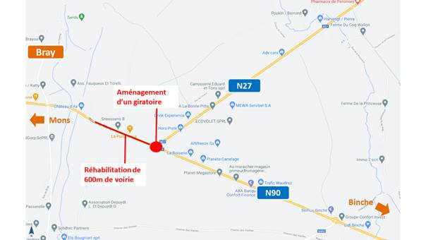 Suite à cette intervention, il sera également procédé sur 600m à la réhabilitation du revêtement de la N90 depuis le nouveau giratoire vers Mons.