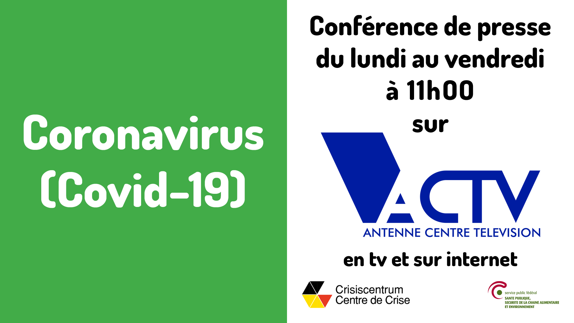 ACTV vous propose de suivre du lundi au vendredi, la conférence de presse COVID-19. Une émission proposée en collaboration avec nos collègues de RTC Liège.